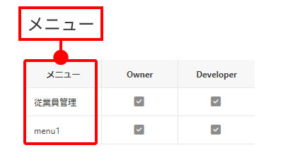 権限が付与されたメニューへのアクセス