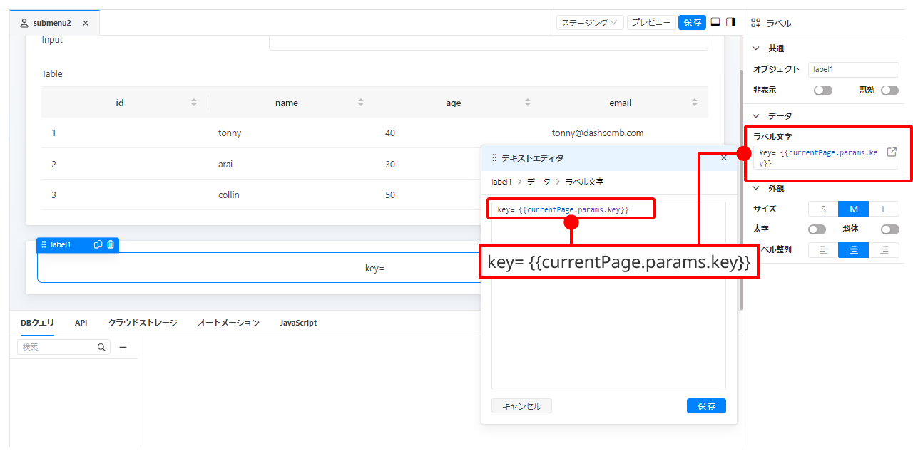 labelをkey= {{currentPage.params.key}}に変更します。