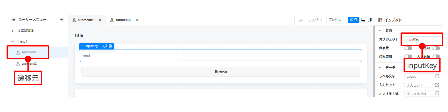 遷移元画面のサブメニューを押して、遷移元画面を開きます。